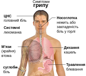 Спалах грипу. Основні скарги — це висока температура тіла, біль у м’язах, сухий кашель.